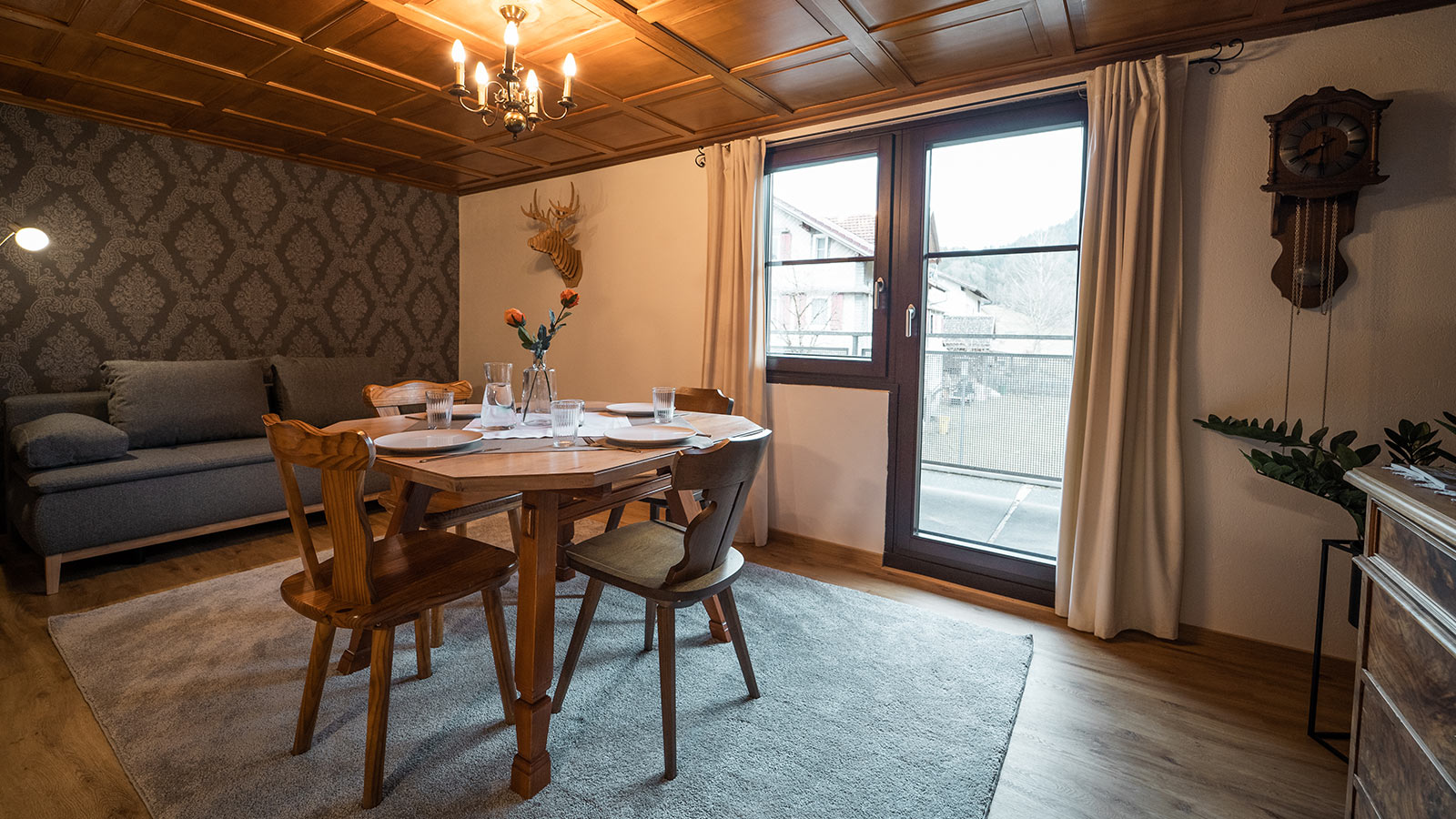 Unser wohl charmantestes Apartment im Bregenzerwälder Bauernstil weiß durch seine ländliche Einrichtung zu glänzen. Neben einem großzügigen Balkon mit Blick zur Straße hin, ist der Wintergarten ein weiteres Highlight. Hier kann man wunderbar verweilen und die Seele baumeln lassen.